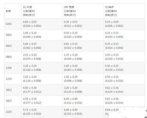 貼片電容的體積比較小,常見的封裝有0402,0603,0805等。